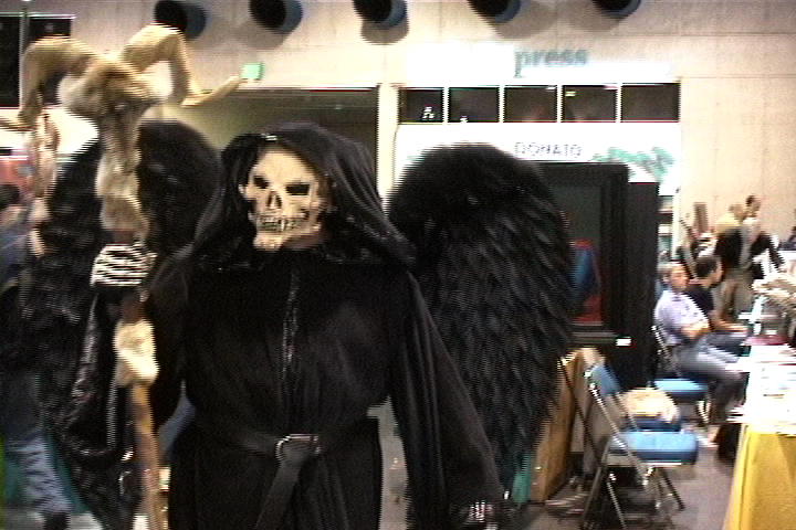 The photos alongside this post are from 2003—I think. That was the first year I had a camera. It was a video camera that took “stills” that were really a single video frame extended over six seconds. That’s why the quality is low for a digital photo, even for the time. Before 2003, the only memory aids I have for Comic-Con are the wonderful souvenir books. Except for the old Usenet comic-con reports, but I’m not going to read over them right now to refresh my memory, because I’m writing this over my lunch break at the office and I don’t have the time. And this, I suppose, really is my last comic-con report.