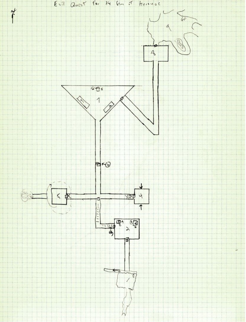 7. A 4th level Elf (Fighter/M-U) commands the scene here, including a 2nd level M-U and 8 second level fighters. The gem is in a secret depression under the large throne. Only the Elf knows about it, and he may attempt to eat it before the party enters if they seem strong.