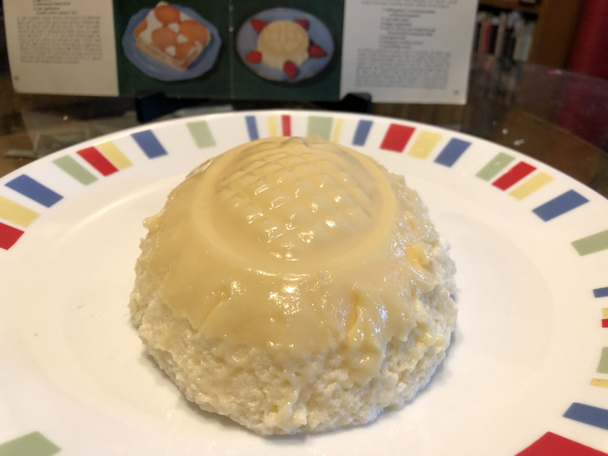 I’m glad I didn’t pass up either of them! That dried fruit and nut roll isn’t in the newer book. Nor are the fudge oatmeal cookies or the Spanish cream. These are all recipes worth making many times. The fudge oatmeal cookies are like no-bake cookies, but easier and glossier. The Spanish cream layers itself automatically into a rice-like layer and a pudding-like layer.