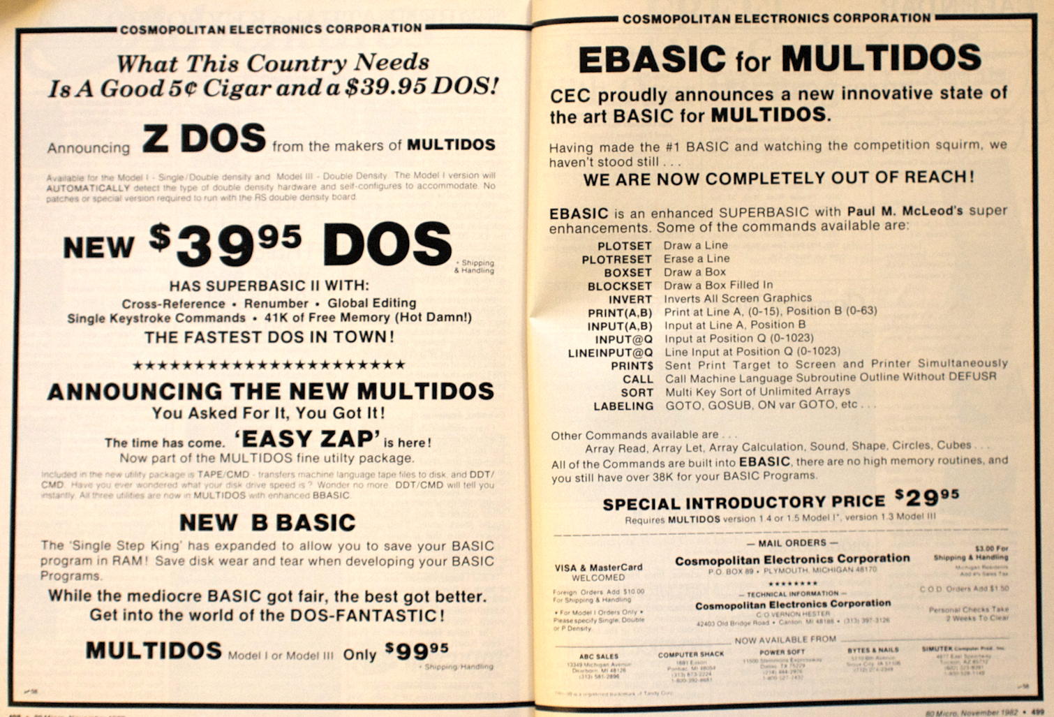 This meant that there was a market for less buggy DOSes, and a market for more feature-filled DOSes that could read a wider variety of formats and drive types. I remember 80-Micro being filled with ads for various DOSes. That and Scott Adams Adventures were also the most pirated of software. People didn’t want just one DOS, they wanted all of them.