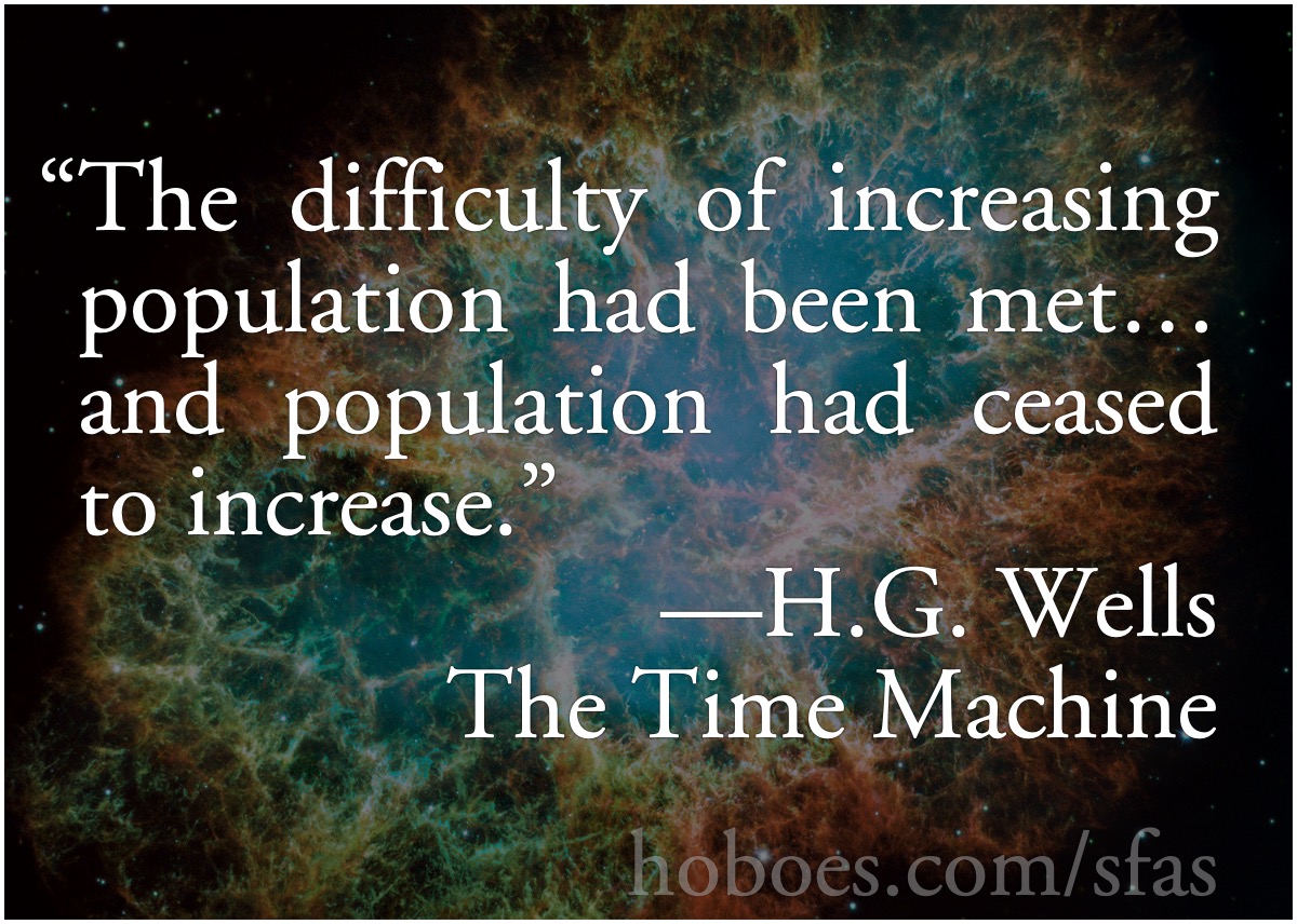 The shop, the advertisement, traffic, all that commerce which constitutes the body of our world, was gone. It was natural on that golden evening that I should jump at the idea of a social paradise. The difficulty of increasing population had been met, I guessed, and population had ceased to increase.
