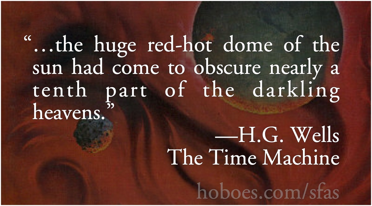 At last, more than thirty million years hence, the huge red-hot dome of the sun had come to obscure nearly a tenth part of the darkling heavens.