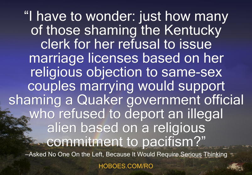 - How many of those denouncing the Kentucky clerk’s refusal to issue marriage licenses would denounce a Quaker government official who refused to deport an illegal alien?