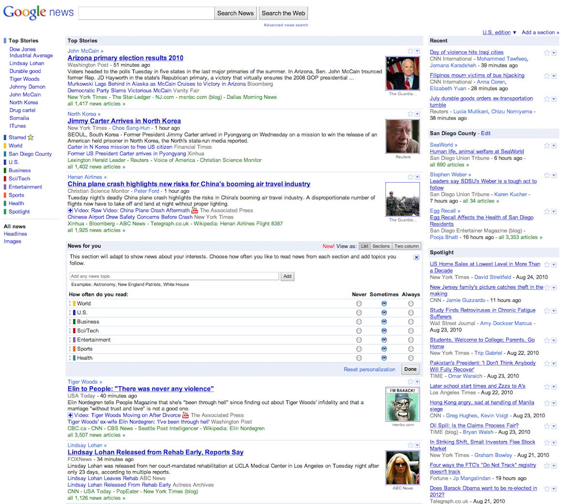 Talk about ignoring the elephant in the election results. Google News compiles what newspapers are talking about: John McCain, incumbent, wins1. (You should be able to make your browser window wider to make the images wider, or just click on them to see them semi-full-size.)