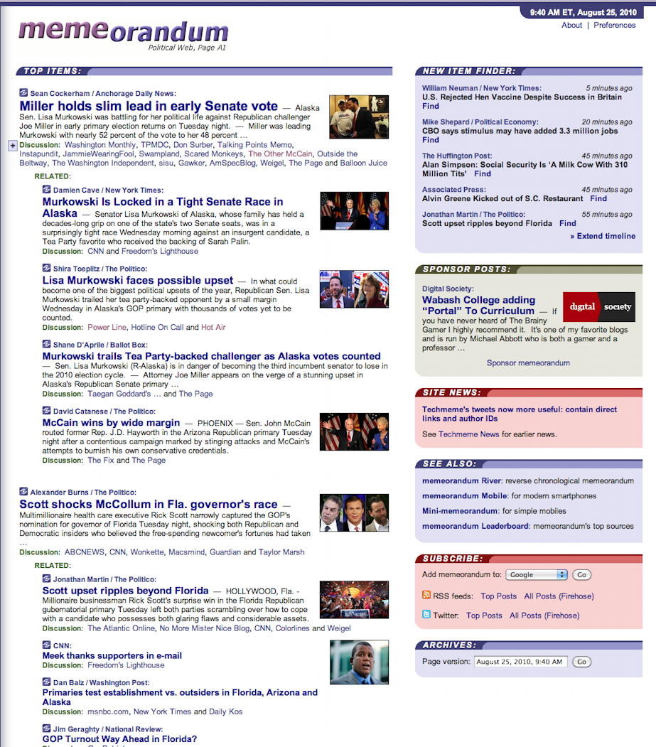 It looks as though the newspapers had stories all ready to go trumpeting “incumbents win, tea parties lose”. The hoped-for meme across the news-sphere was primed in this pre-results Washington Post headline: “Primaries test establishment vs. outsiders in Florida, Arizona and Alaska”. The hoped-for answer was “Washington Veterans Take Senate Primaries”. That was the New York Times headline, up on their web site on August 24—and a version of it, according to the web site, in the paper edition of August 25!