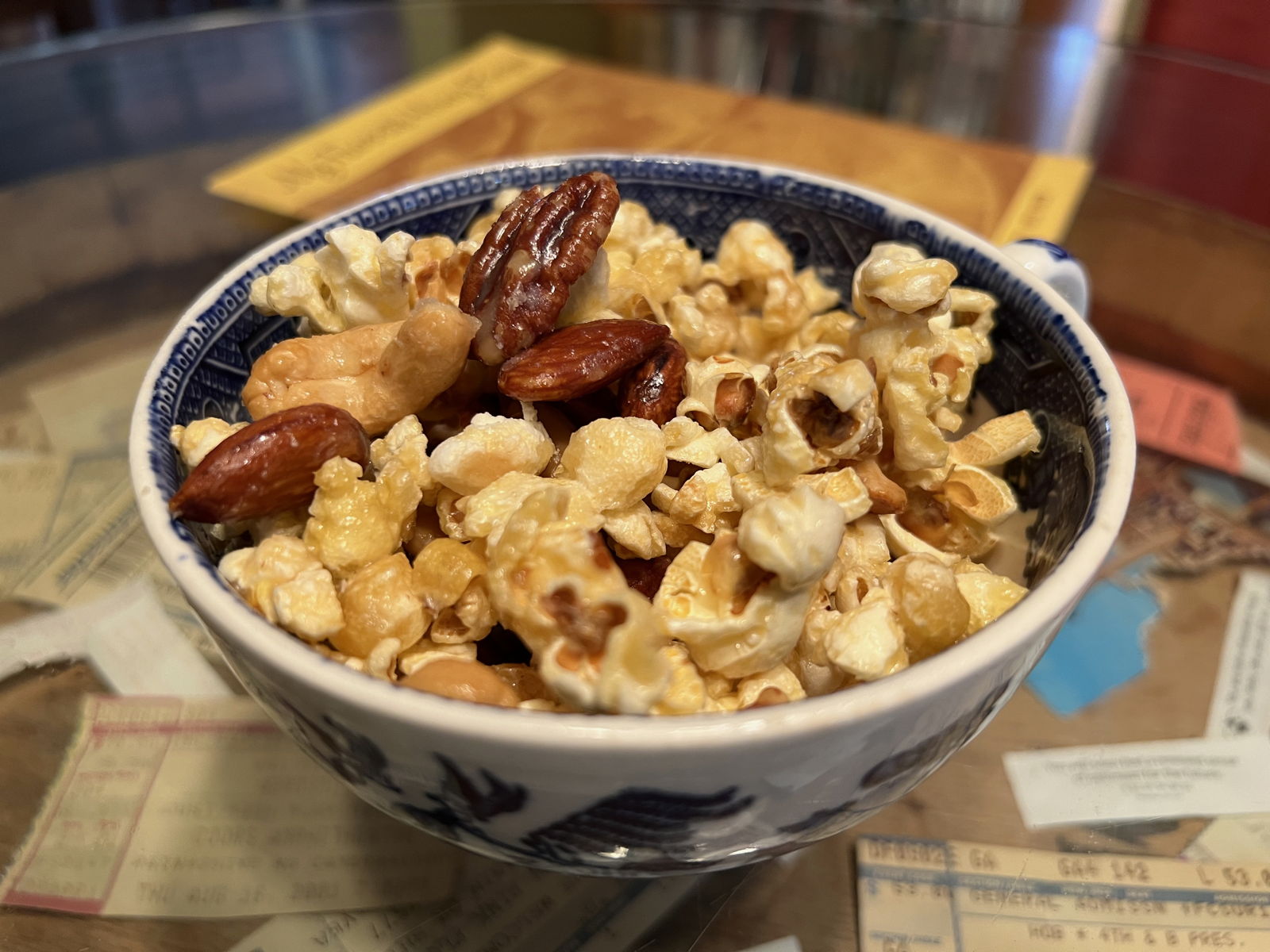All of her recipes tend to do their best to replace as much of the other sweeteners as possible with honey. Her popcorn crunch is butter and honey. The aforementioned rice custard pudding uses honey and vanilla. The pie does use a bit of sugar, but that’s likely because you need granulated sugar when creaming the sugar with butter to get the right effect. Except for the two tablespoons used for creaming with the butter, the rest of the sweetener is honey, with milk powder and vanilla for flavoring along with the pecans.