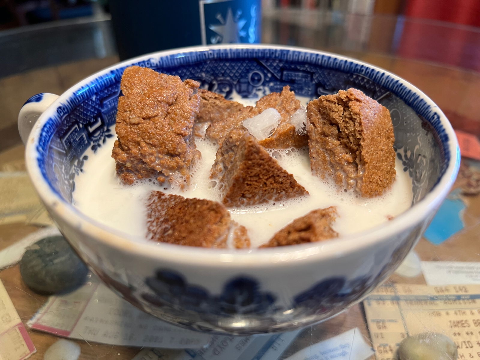 Wheat for Man is a whole wheat cookbook. It caught my eye mostly because of the recipe for “Wheatnuts… similar to commercial Grapenuts.” I used to like Grape-Nuts a lot, but they’ve lost the malty flavor I used to enjoy about them. Since this recipe includes malted milk powder, I thought it’d be worth trying, and it was.