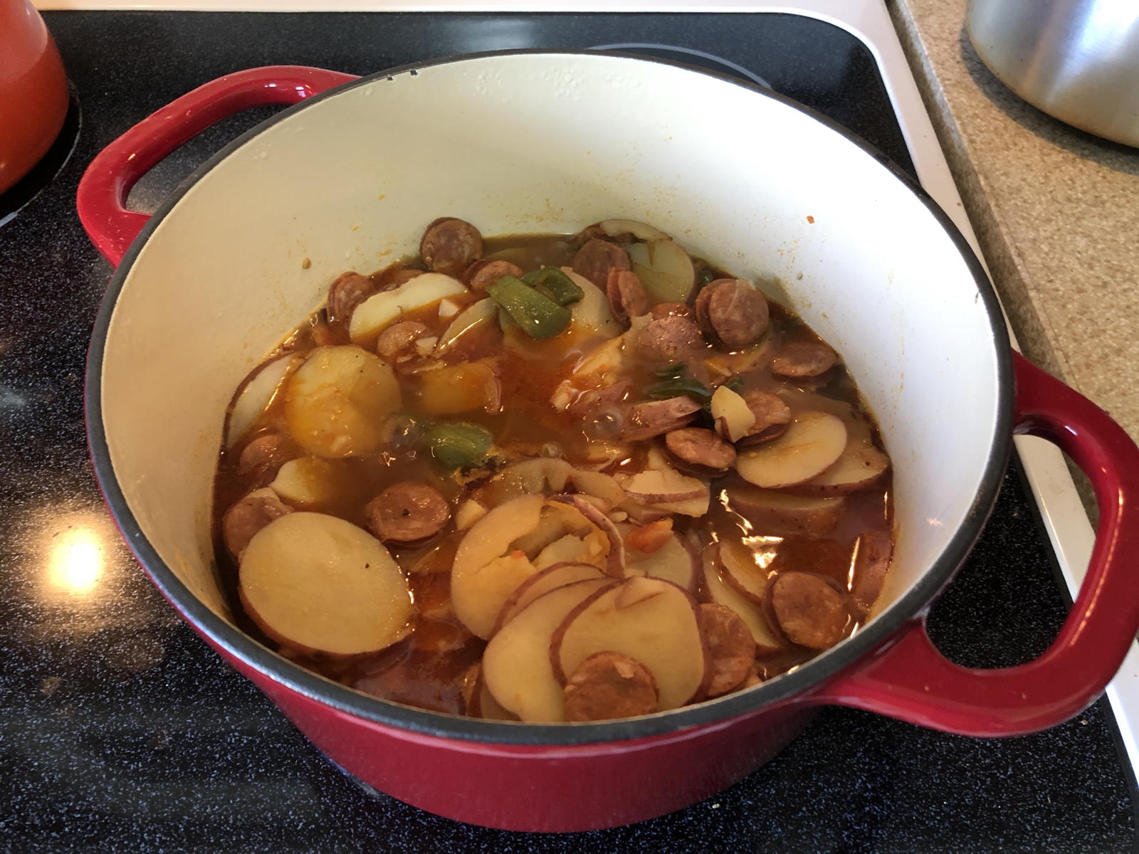 Friday is National Potato Day. Why not try this very easy potato-sausage stew from Hungary? You can make it in an hour on the stovetop, or start it up in the morning in a crockpot.