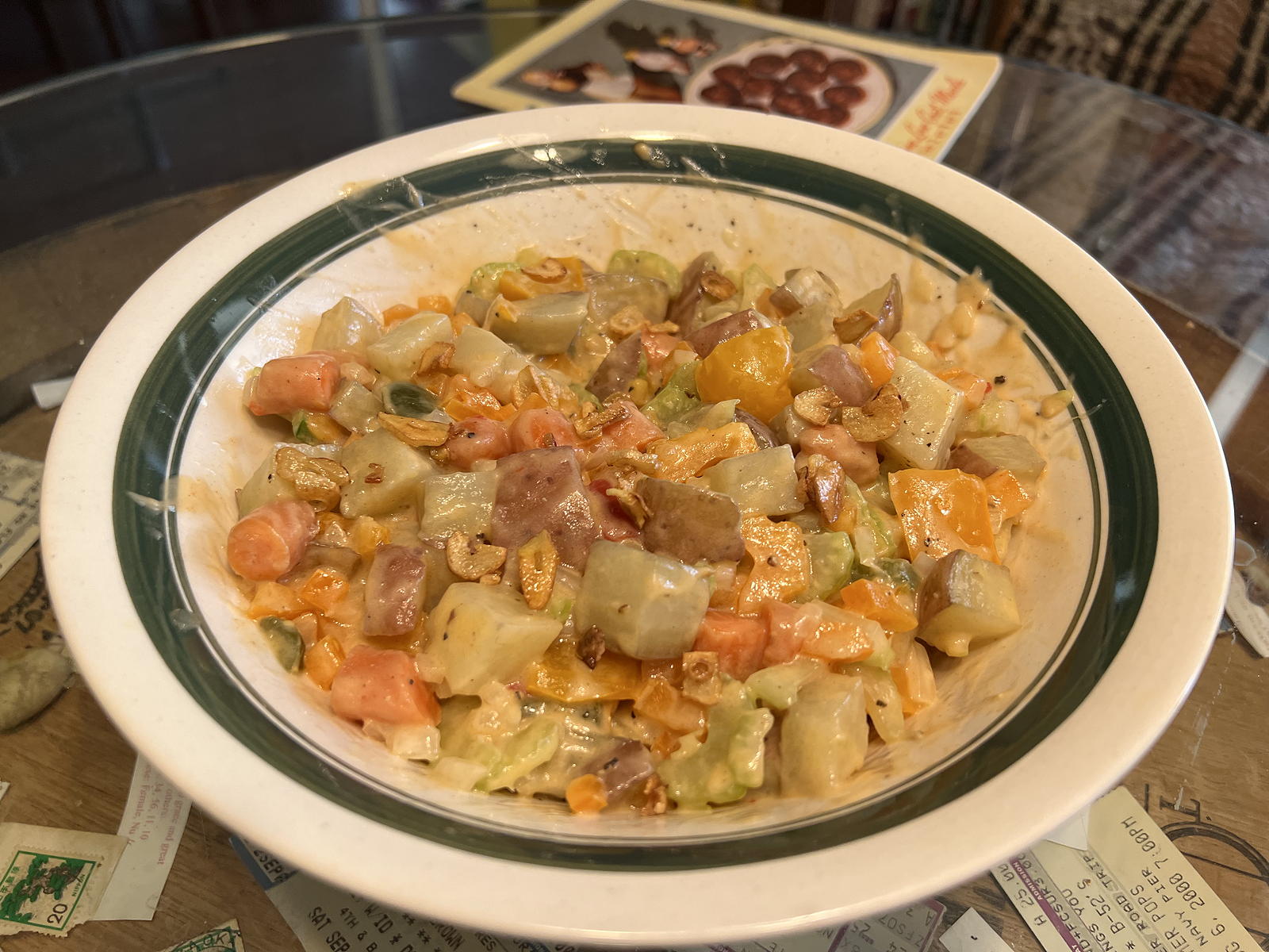 I generally dislike mayonnaise, and usually try to avoid it. I also tend to avoid even good recipes that use mayonnaise, because it means I’m going to have a jar of mayonnaise sitting in the refrigerator for several months and probably over a year, unused. That means that I almost always only have egg salad sandwiches and chicken salad sandwiches, two of my favorites, when I’m eating out.