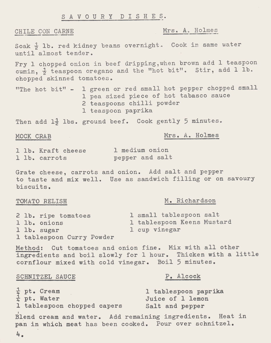 - “Home Tested Recipes by The Royal Australian Air Force Women’s Association”. Great recipes for tomato relish and peanut crisps.