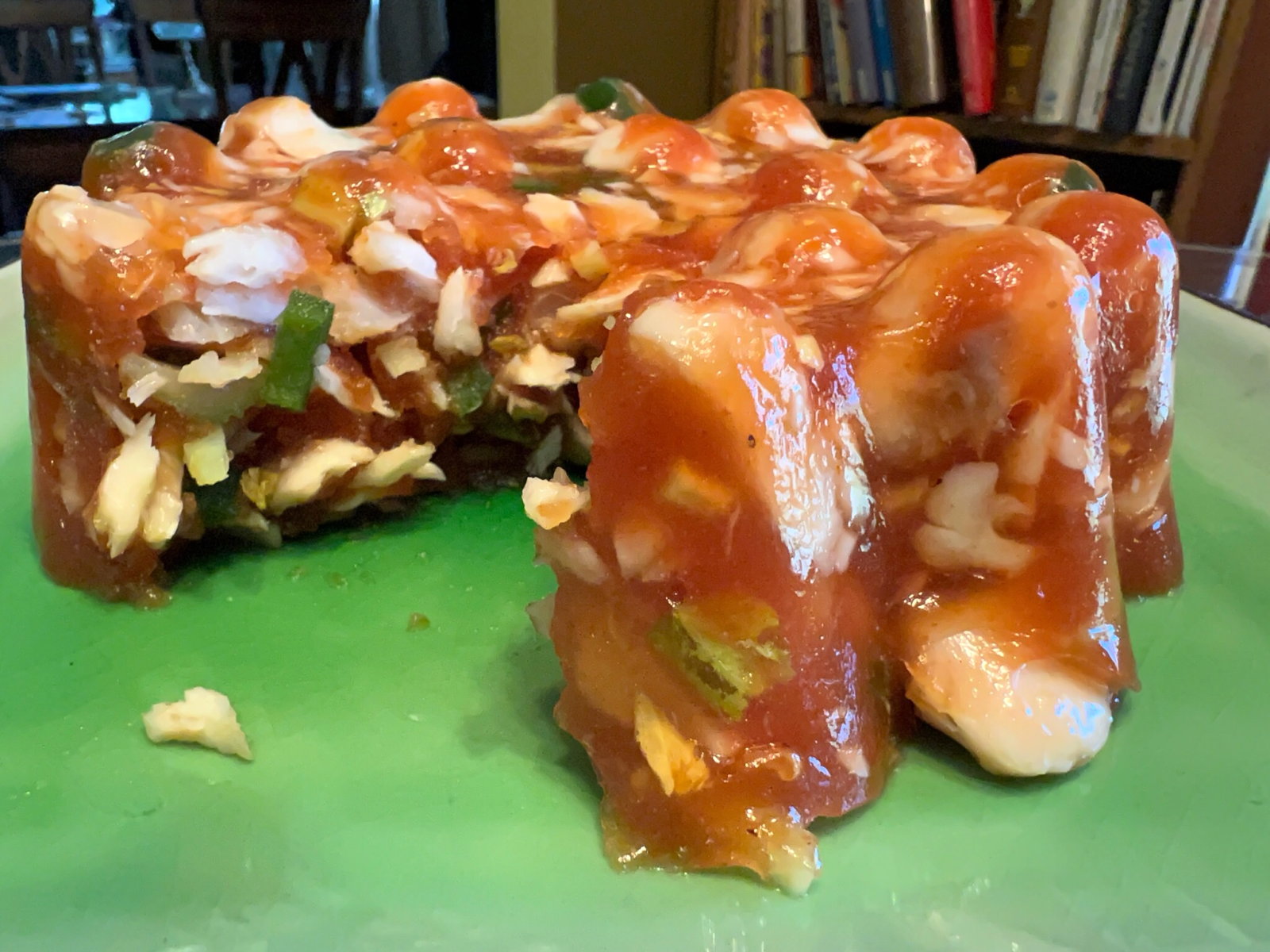 In my opinion, this gelatin would be a very good tomato salad for infinite people, because no one’s going to eat it.