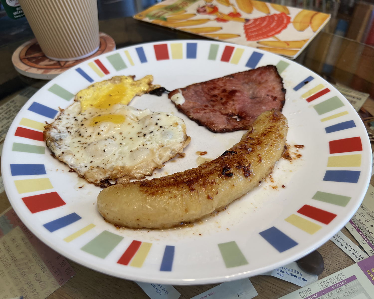 There are probably as many main dishes and savory sides in this cookbook as baked goods. These are the recipes moderns ridicule, but bananas in main dishes are a common feature in other cultures. Bananas are a perfect mix with curries, and, like the Hawaiian Pizza’s pineapple, also great with ham. In fact, one of the recipes here is for pan-fried bananas with ham and eggs; it sounds like a great breakfast and in fact it is a great breakfast. Pan-fried firm bananas end up being a sort of solid syrup, the taste melding very nicely on the ham or on the egg. The bananas end up browned, almost roasted, on the outside, soft and fragrant on the inside.