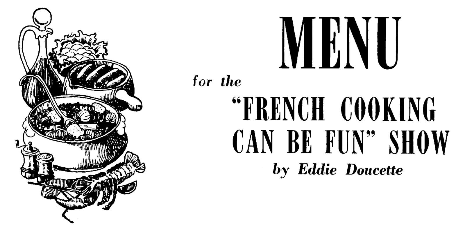 In response to Tempt Them with Tastier Foods: An Eddie Doucette Recipe Collection: When I get locked into a serious recipe collection, the tendency is to take it as far as I can. You can benefit from my obsession with this collection of wonderful recipes from the fifties and sixties “files of Eddie Doucette”, television personality and IGA chef.