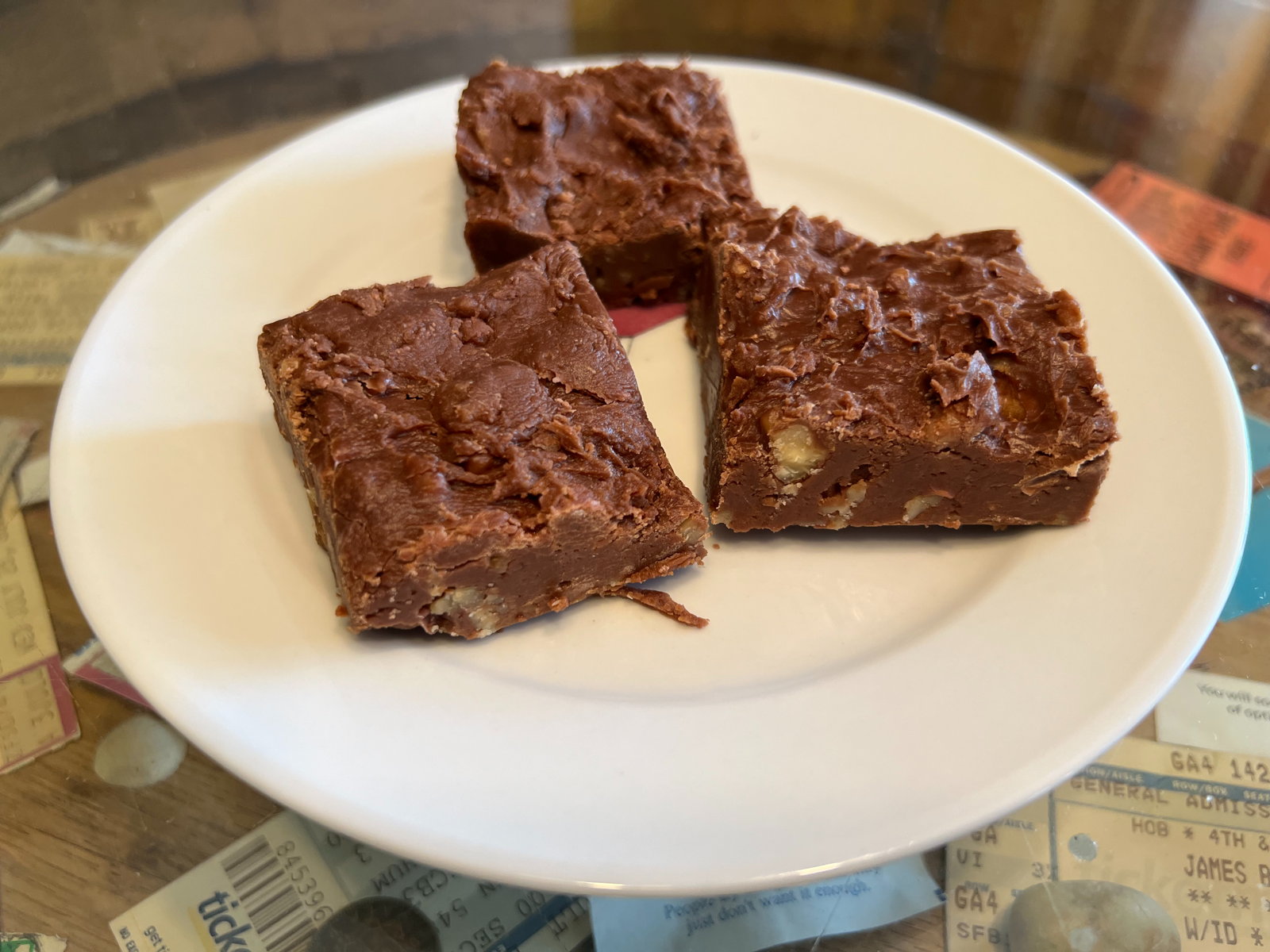I don’t know that the marshmallows should be melted. I stirred them until they were barely melted and then added the chocolate chips and nuts. Given the instructions, I could just as well have added the marshmallows, chocolate, and nuts at the same time and stirred for 1-2 minutes. They would not have fully melted and the result would have been a kind of rocky road fudge. And there’s nothing wrong with that!