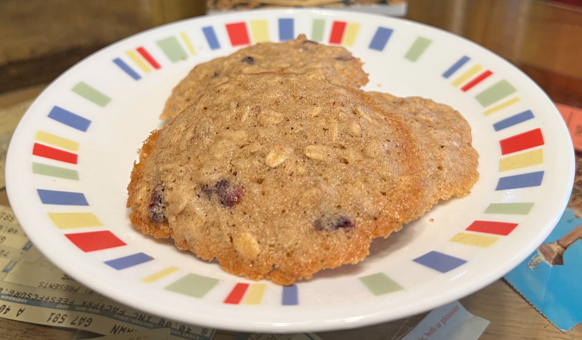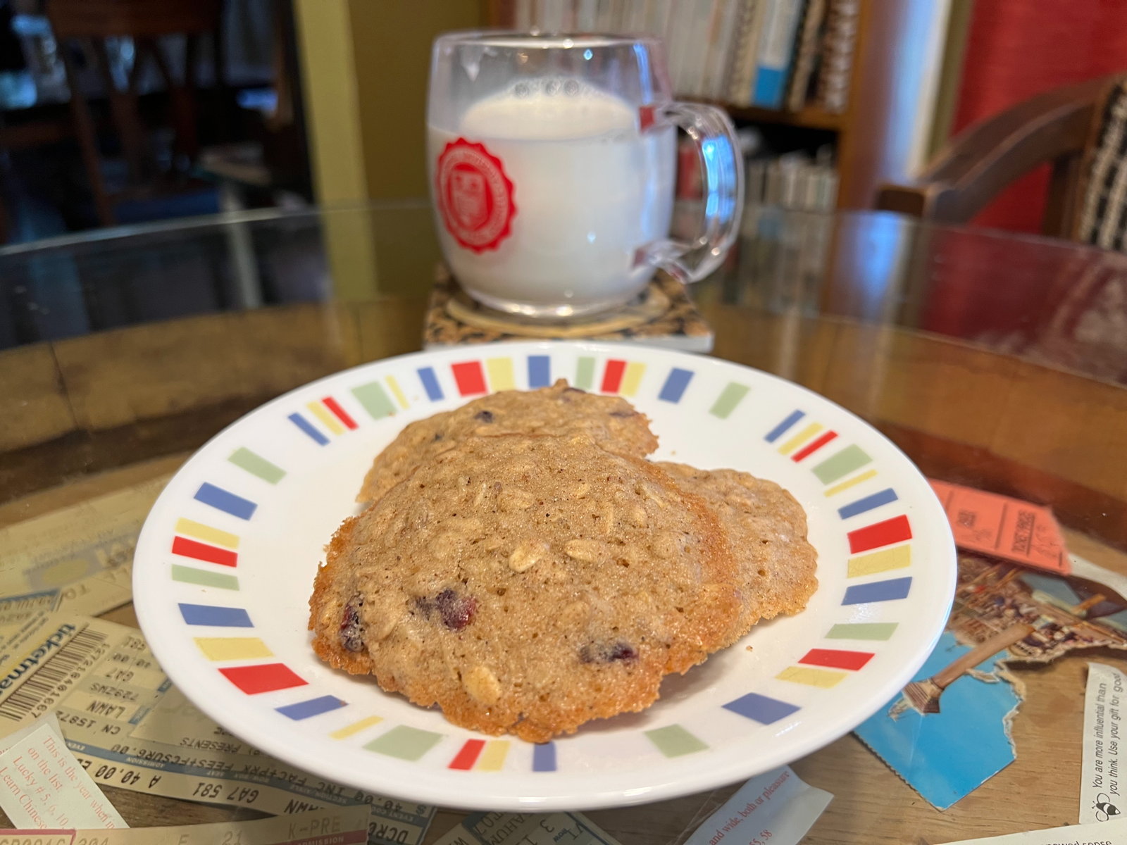 These are nice cookies, and fun to make. I probably won’t make them again, however. Mom had another oatmeal cookie recipe not in these notes that were much better. Like mom, I’ve also found better oatmeal cookies.