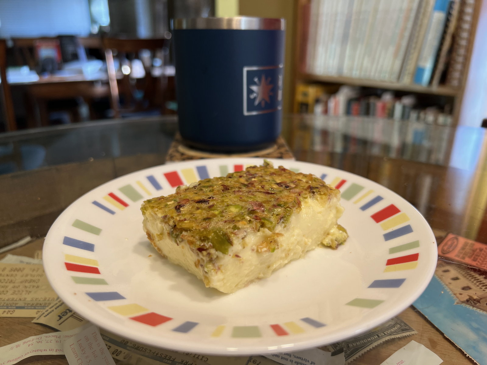 Saffron and pistachio may have been overdoing it. A great custard, but I think I prefer the basic unflavored version!