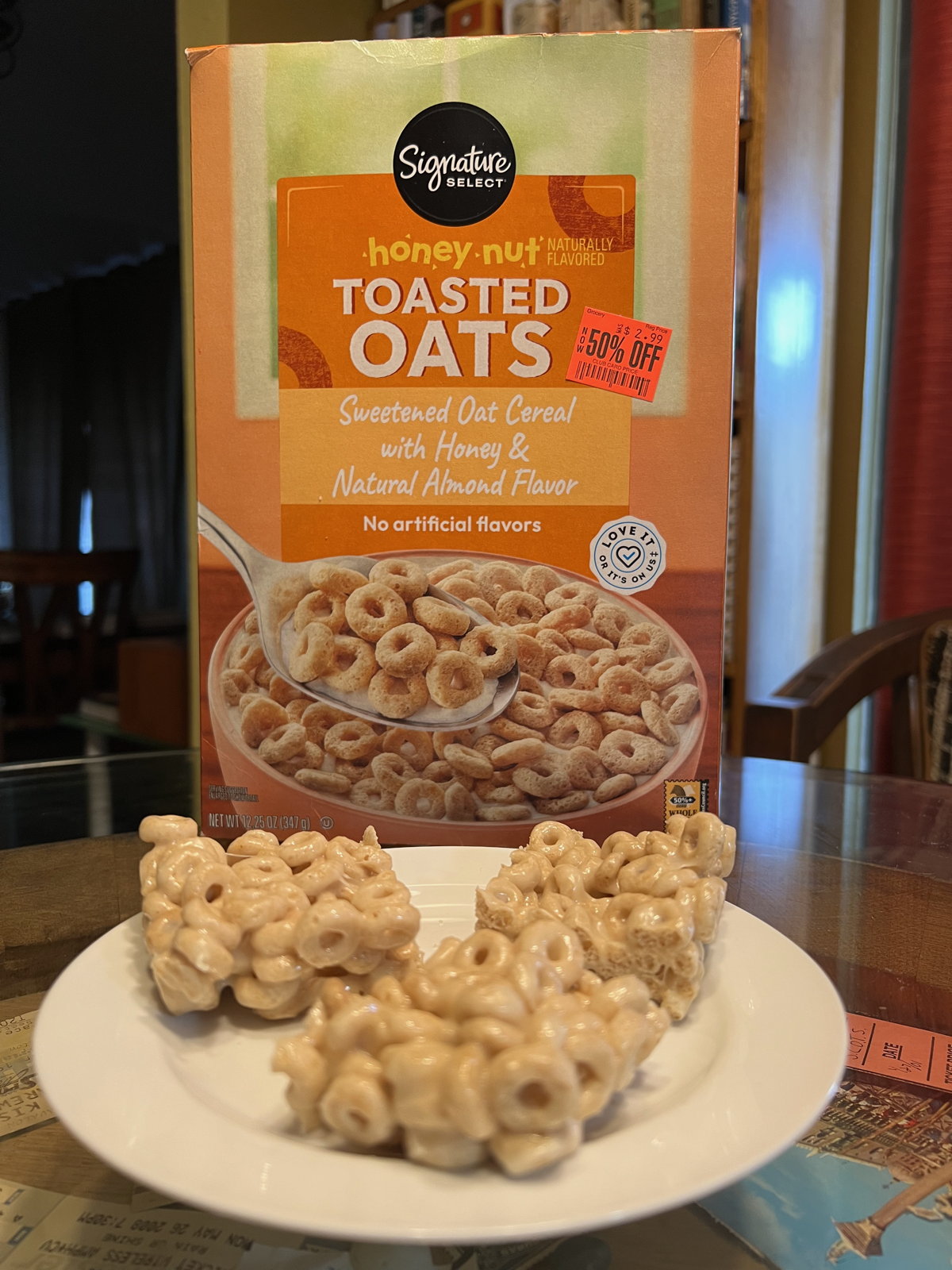 It only occurs to me now that “oven-toasted rice cereal” might not be a euphemism for Rice Krispy cereal but an instruction to toast the cereal ahead of time in the oven.