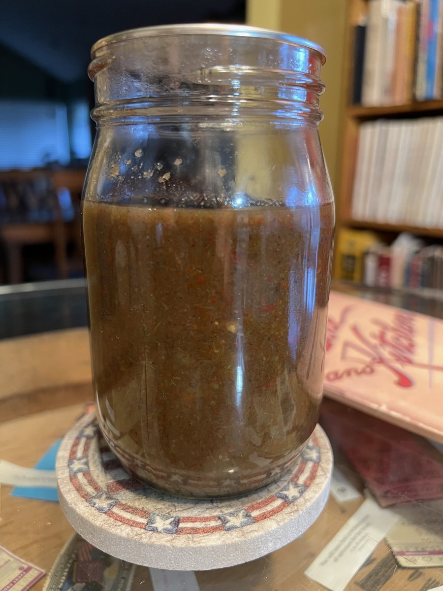 When I made it a second time, I doubled the salt and sugar, and ended up with something even more like modern catsup but still very, very, hot. This is good, but I, at least, need to use it sparingly. It’s wonderful as a catsup on sandwiches but also for adding flavor to stews, casseroles, or soups.