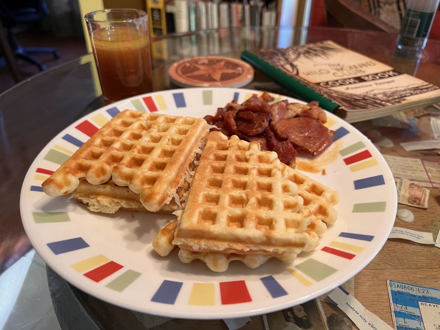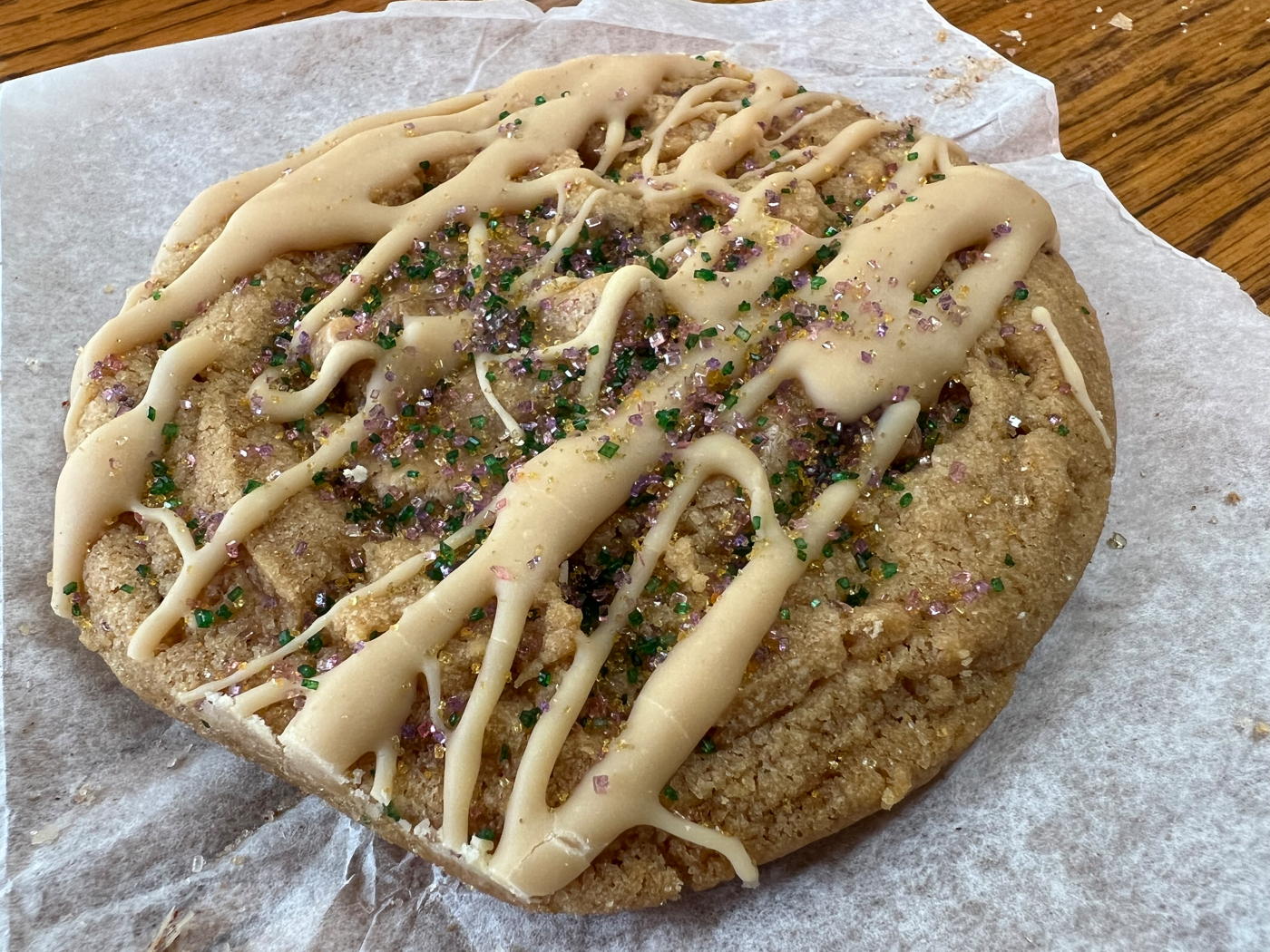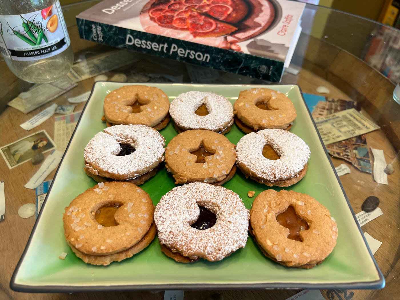 After San Diego I drove down to San Antonio for their annual PTA book sale. I stopped off at Max & Louie’s New York Diner for breakfast and, in addition to a wonderful eggs benedict, I picked up a Linzer cookie to snack on while waiting in line for the book sale. This was so amazing that I decided to try the Peanut Butter and Concord Grape Sandwich Cookies from Claire Saffitz’s wonderful Dessert Person. That’s not a non-sequitur: Saffitz’s sandwich cookies are pretty much Linzer cookies. They not only taste great, they look great, as most of her recipes do.