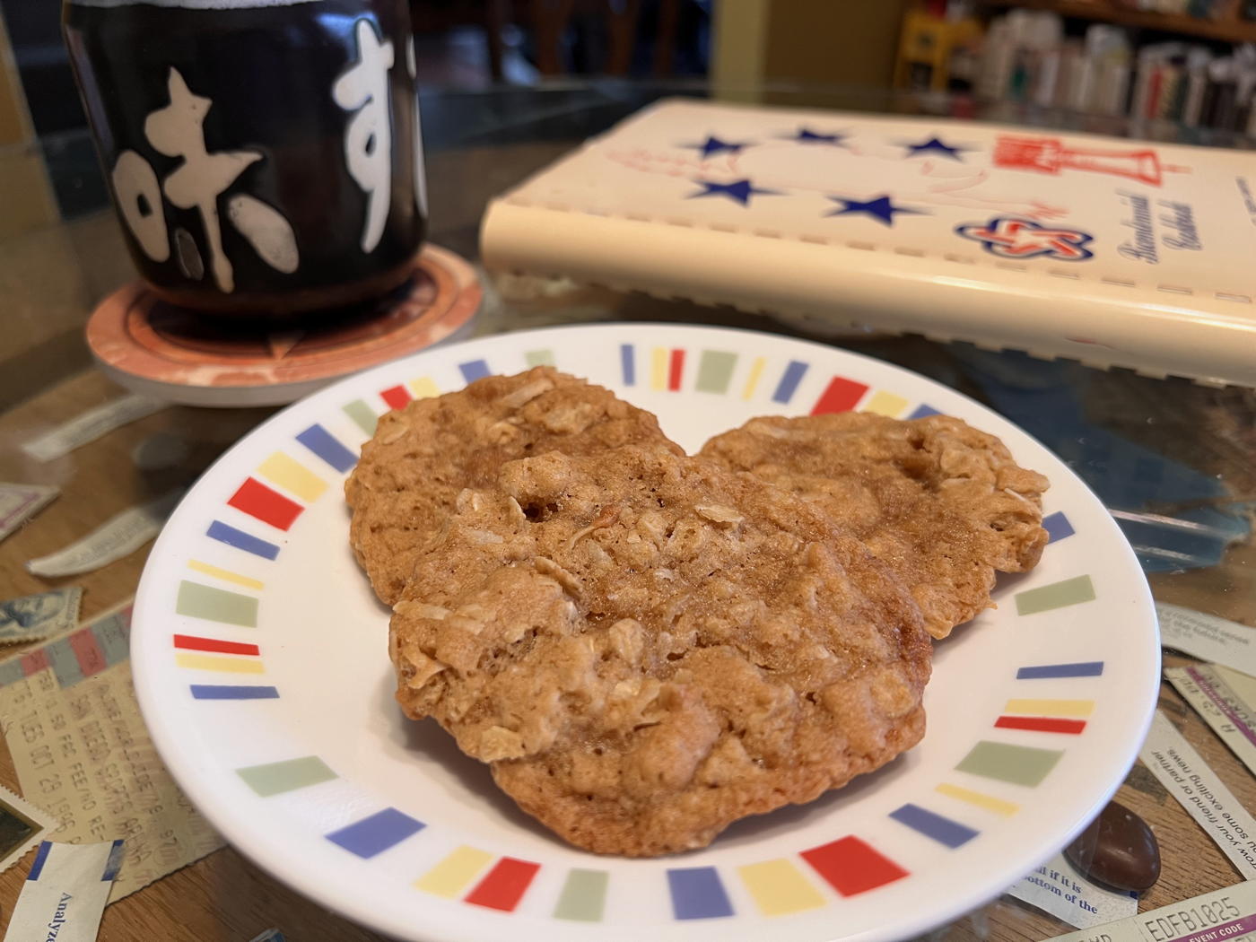 - The Baker’s Dozen coconut oatmeal cookies, compared to a very similar recipe from the Fruitport, Michigan bicentennial cookbook.