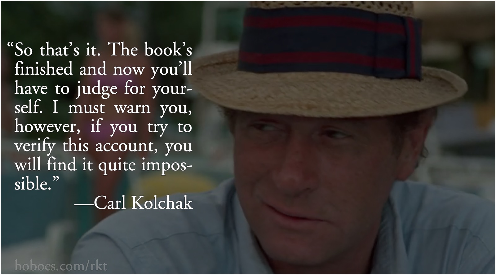 Legacy of Terror highlights the ambiguity of the various dating methods in Kolchak. In the closing narration, Kolchak says: