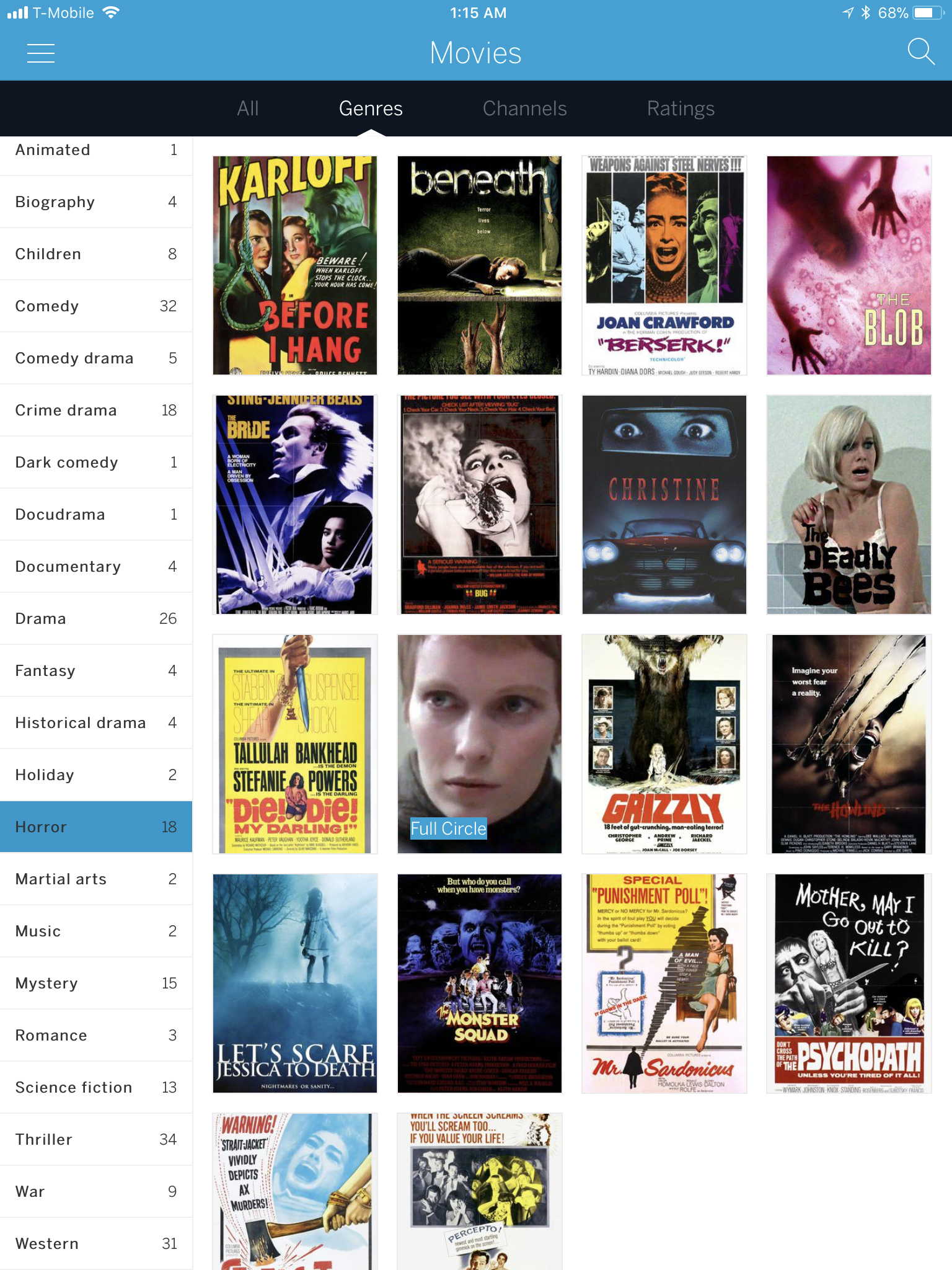 I’m not a fan of monthly fees. One of the reasons I use over-the-air instead of cable for television is to reduce the number of monthly fees I have (I use cable for Internet only). The Tablo TV comes with one month free of a subscription to their database that knows what is playing over the next 14 days. This is very useful. It also allows watching your recordings, or even live broadcasts, remotely; I subscribed for one month following the free month because that was over the holidays and I was traveling. As it turned out, I never used that feature, but the subscription certainly makes it easier to schedule recordings. Instead of going through channel by channel on a site such as TV Guide, you can just go through a genre-by-genre list of movie and television titles.