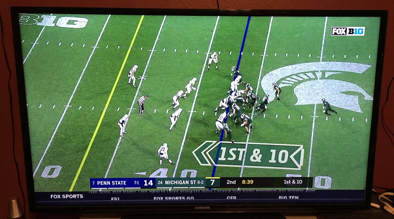 The only drawback of watching television live, besides not being able to fast-forward beyond the current time, is that fast-forwarding and rewinding don’t show previews. The scrub previews are created after the show is recorded; a show in progress doesn’t have them; thus, for example, when fast forwarding ahead through the Michigan State games I did not have a preview to help me, because the game was still going on.