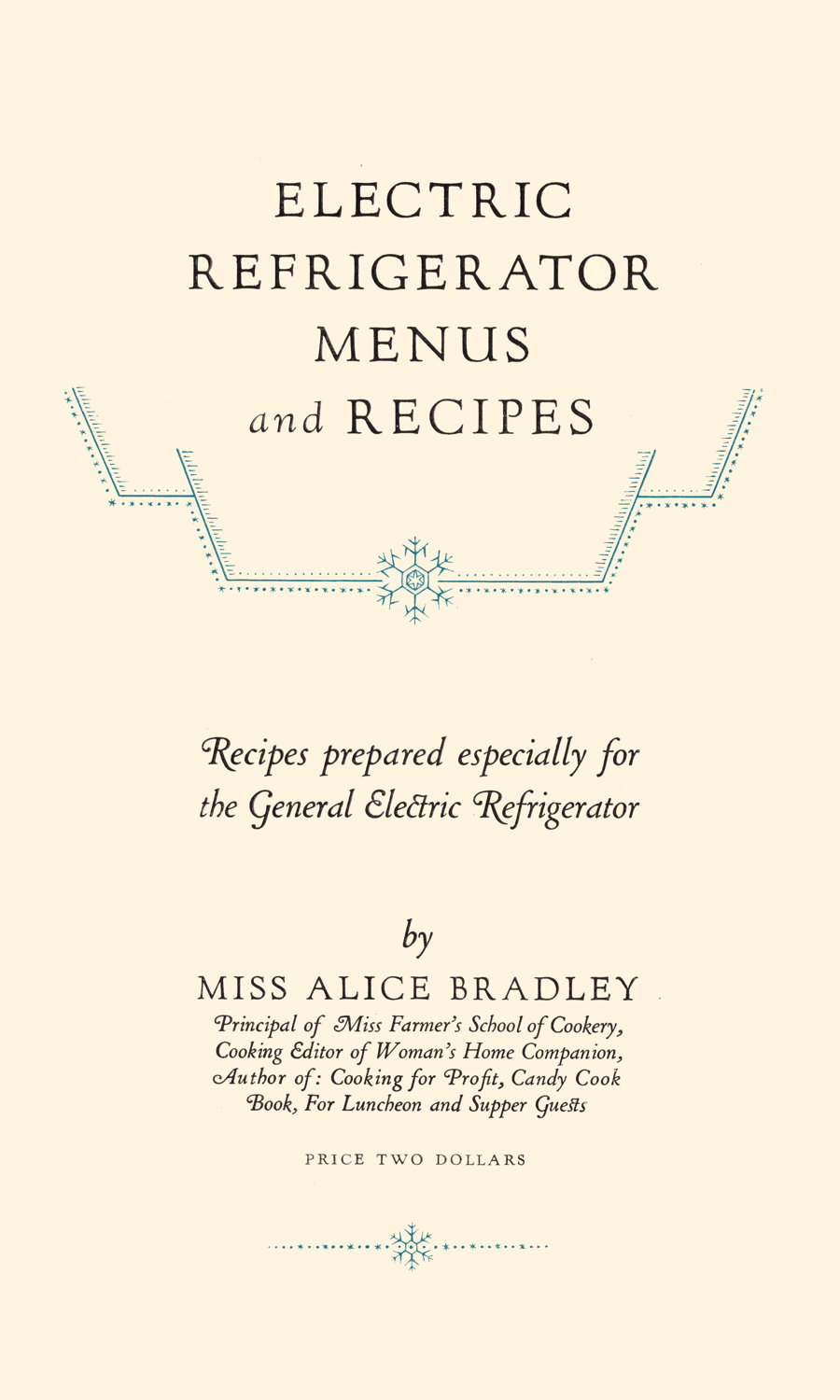 - Electric Refrigerator Menus and Recipes (5): Miss Alice Bradley at Internet Archive (ebook)