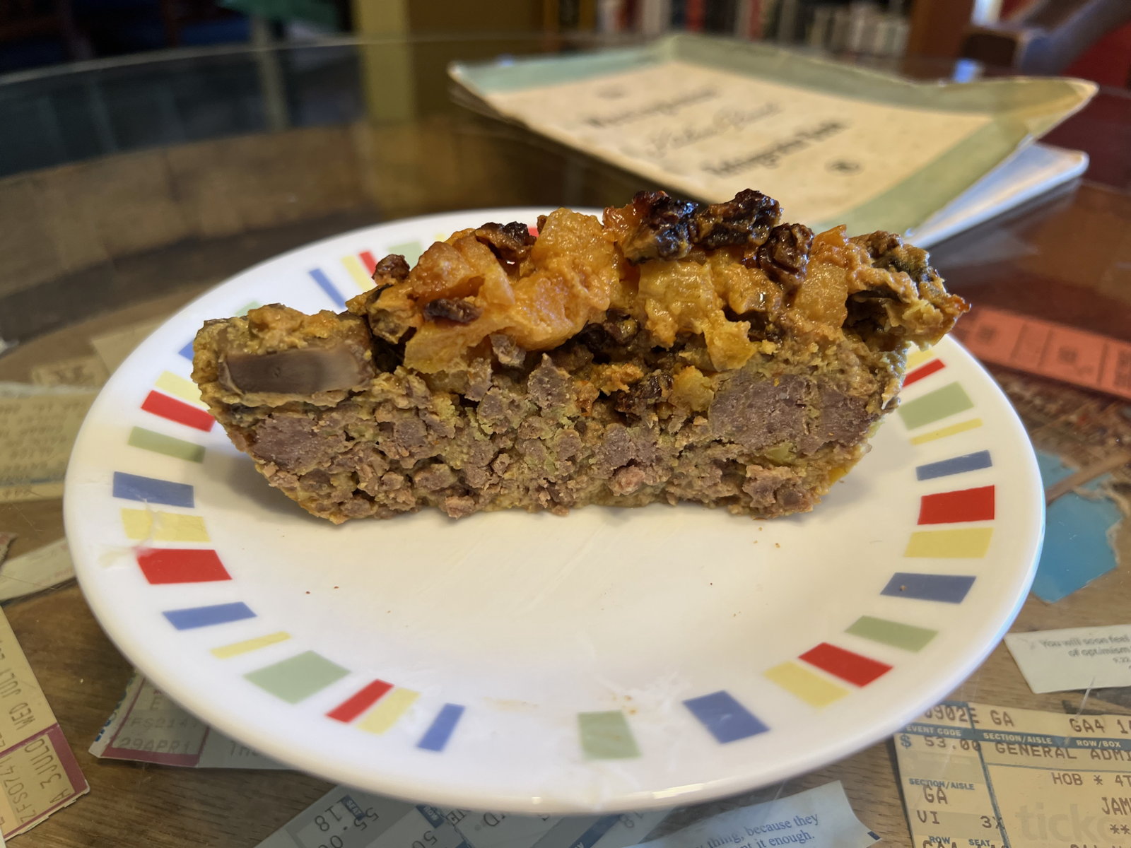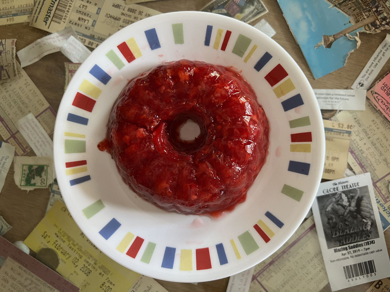 I also made the Cranberry Jelly Salad, mainly because I enjoy cranberries but also because I had for some reason a package of cherry gelatin that I would otherwise never use. It’s not likely something I’ll make again. The flavor was fine, but the texture was sparse. Like Tolkien’s “butter over too much toast” this was “cranberries over too much gelatin”. That said, I ate it as its own dish. If served with chicken salad as the recipe suggests, that texture might well have been more appropriate. And, of course, this may have been a Depression recipe, using gelatin to extend the ingredients.