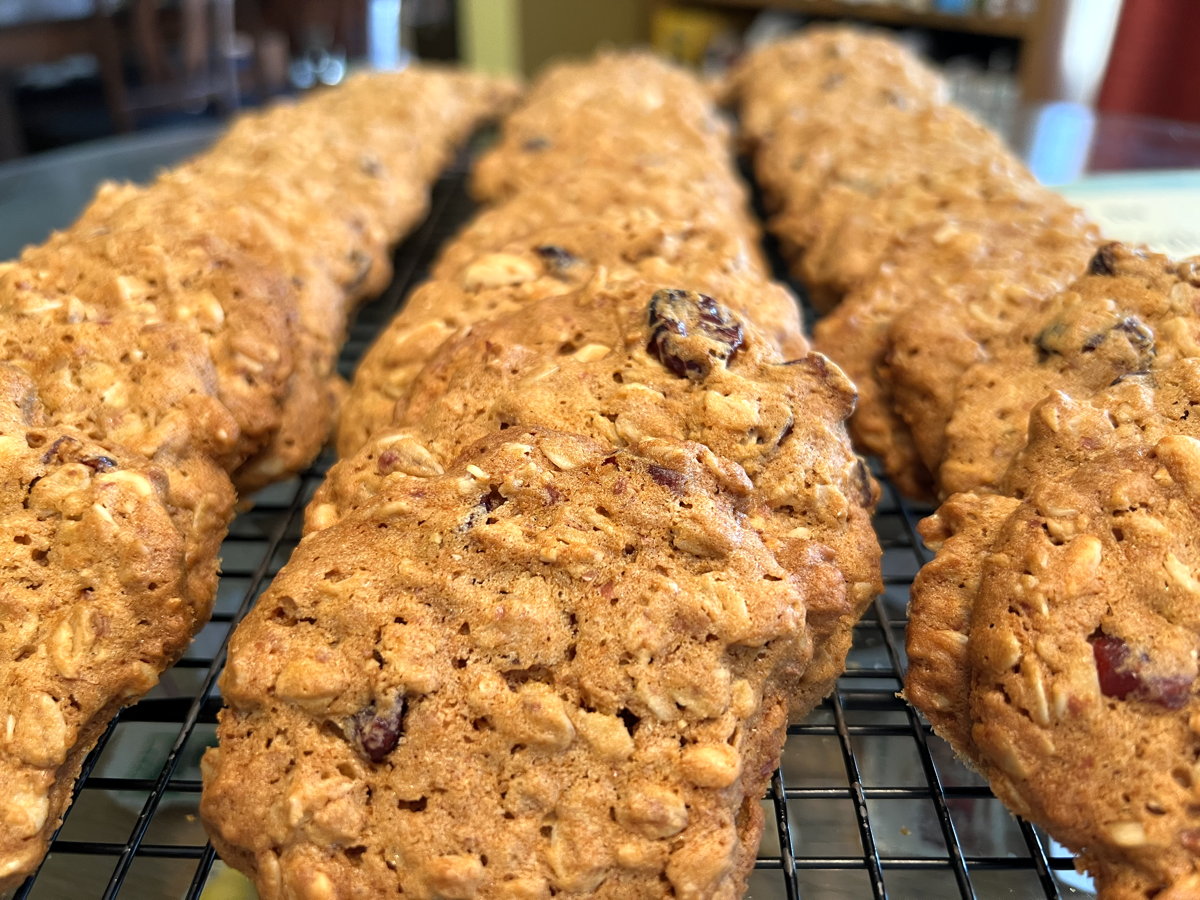 Wonderful early example of oatmeal cookies. No eggs. A little milk. I used cranberries instead of raisins, because I like them, with oatmeal especially.
