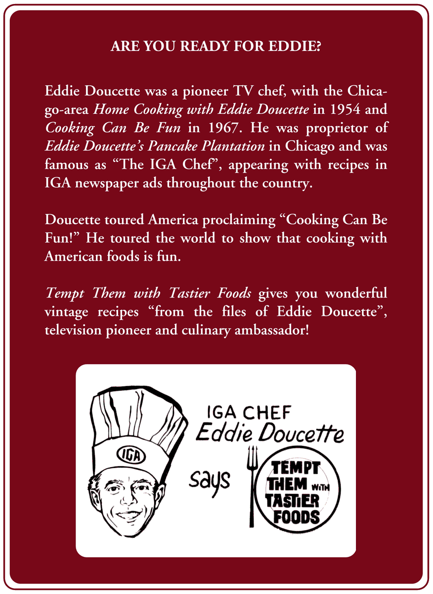 The second printing of Tempt Them with Tastier Foods contains several newly-discovered Eddie Doucette recipes, as well as an interview with the chef’s son, Eddie Doucette III.