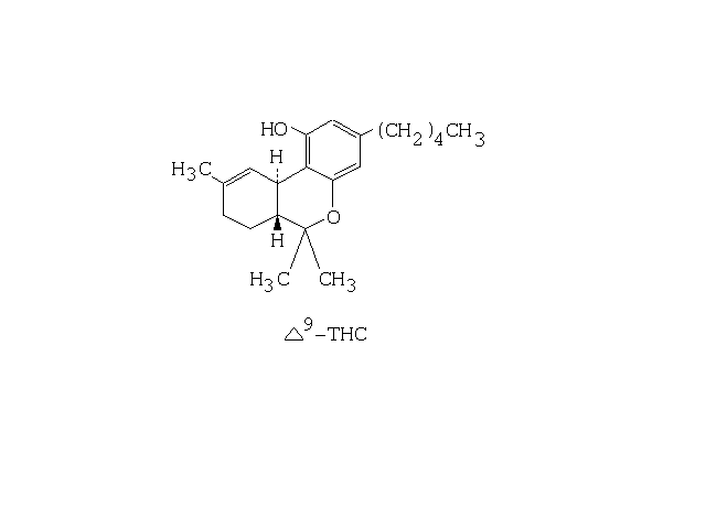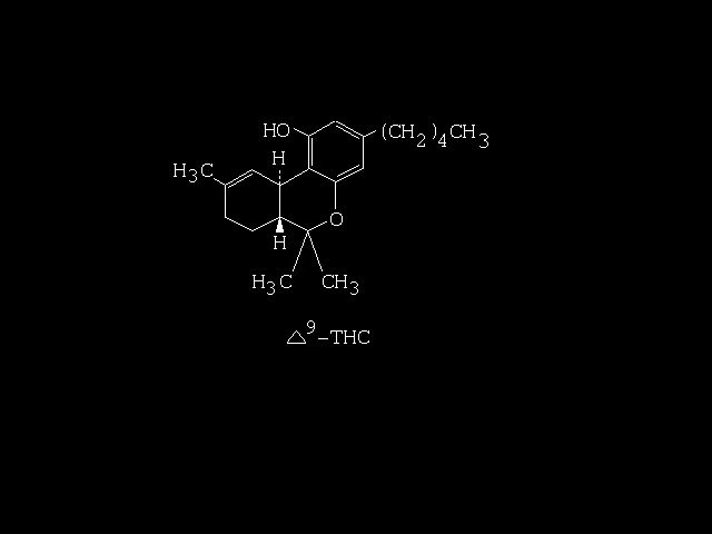 - The THC molecule in white text over a black background.