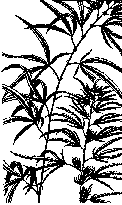- A drawing of an arcing marijuana plant.